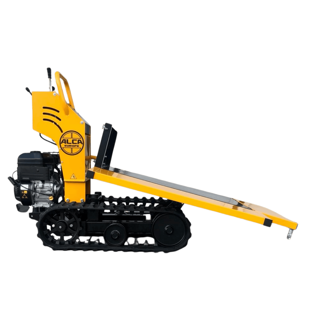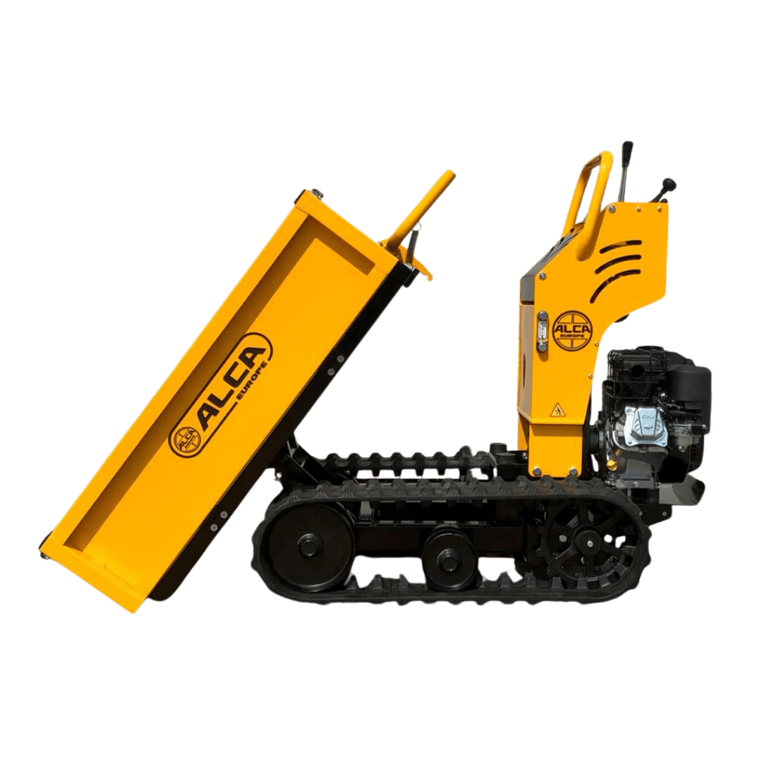 It can be equipped with a tipper body or bucket, and tipping is manual.