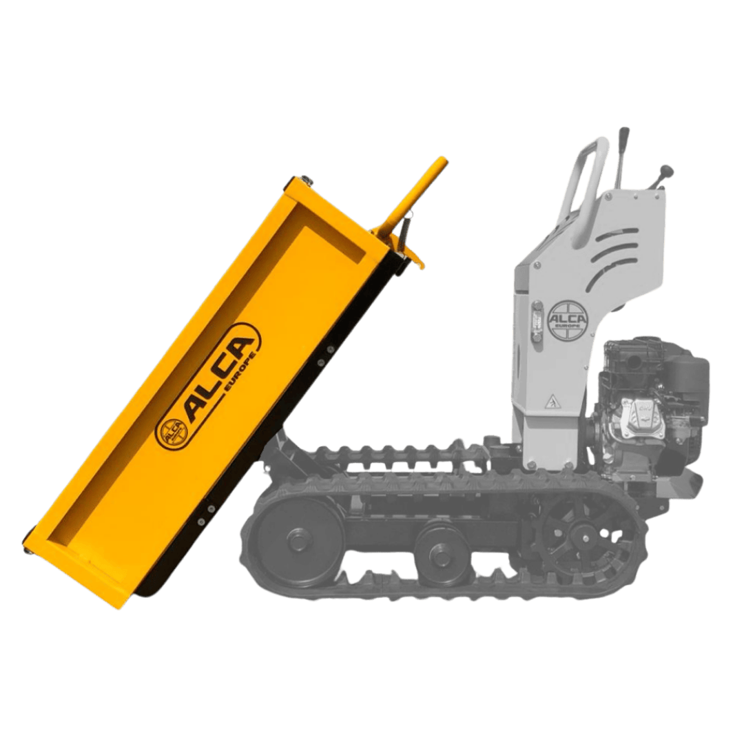 Il peut être équipé d’une benne ou d’un godet, le basculement est manuel.